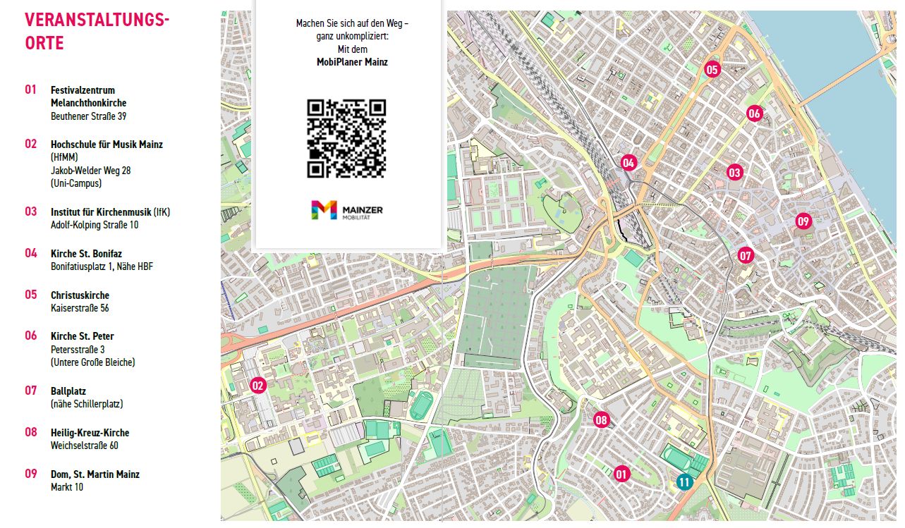Veranstaltungsorte in Mainz (anklicken öffnet die Karte in neuem Fenster):